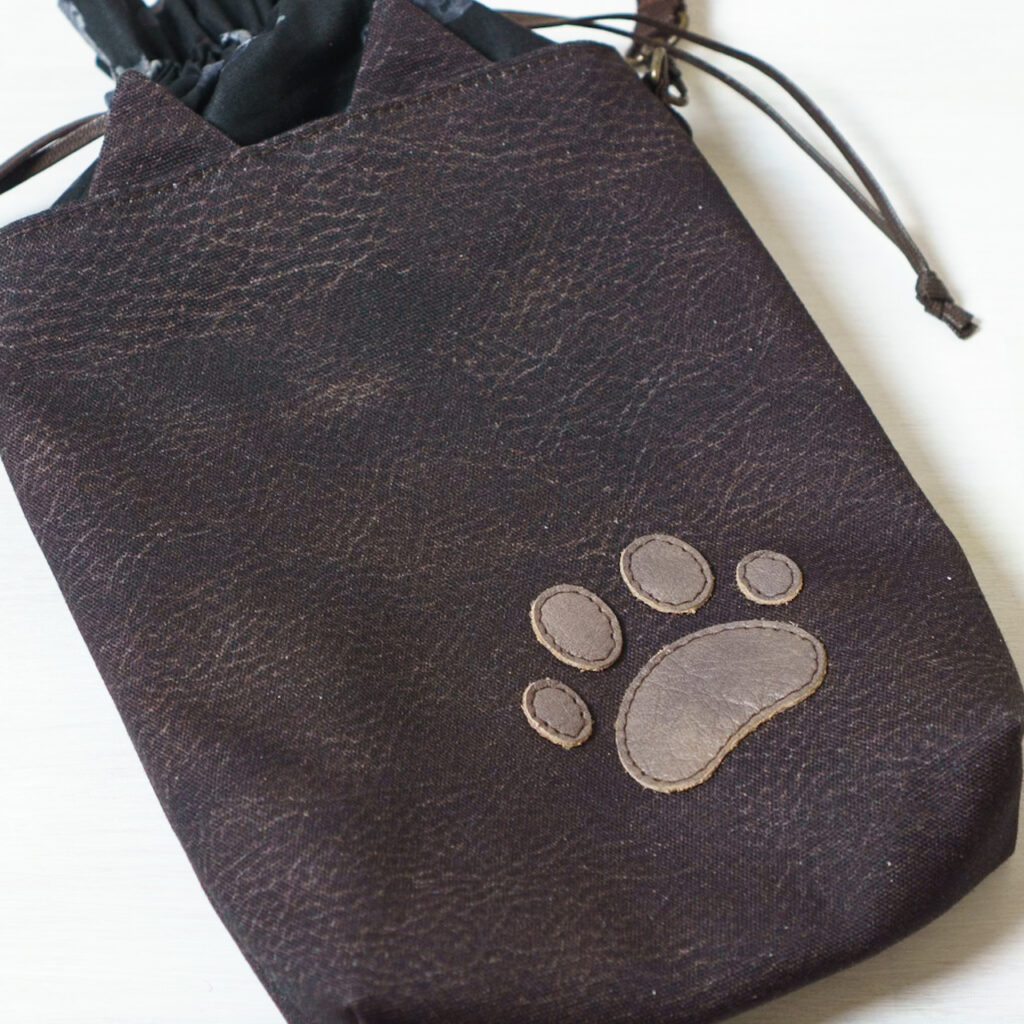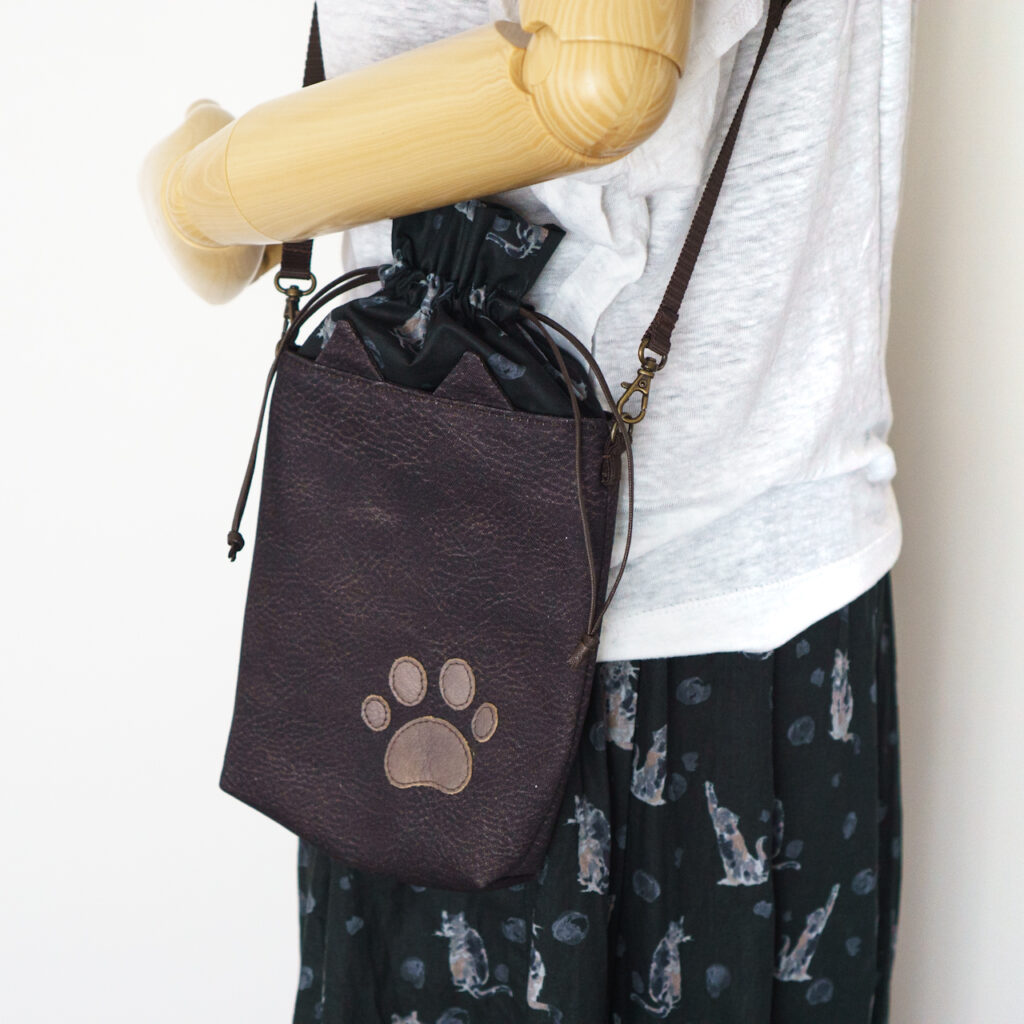 巾着部分は猫柄になっています。