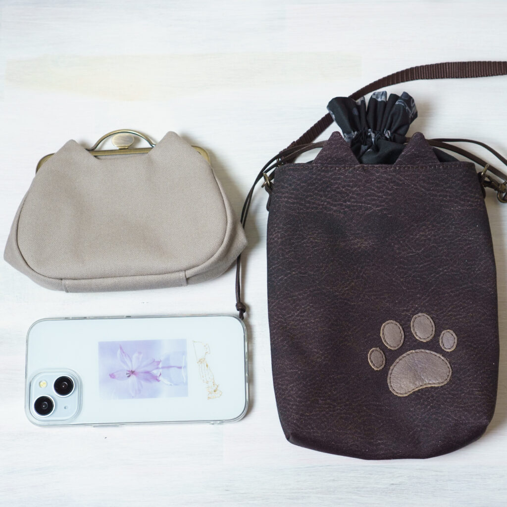 チャ・猫耳巾着スマホショルダー