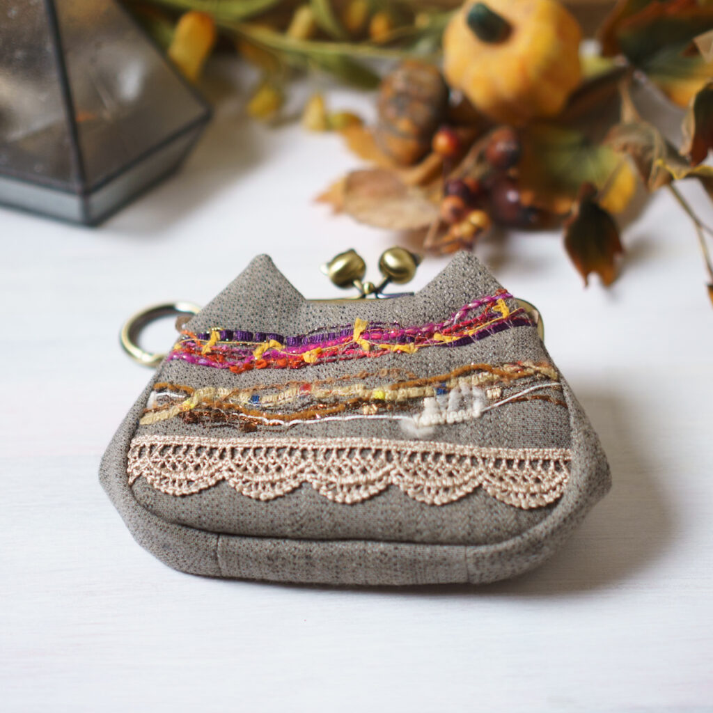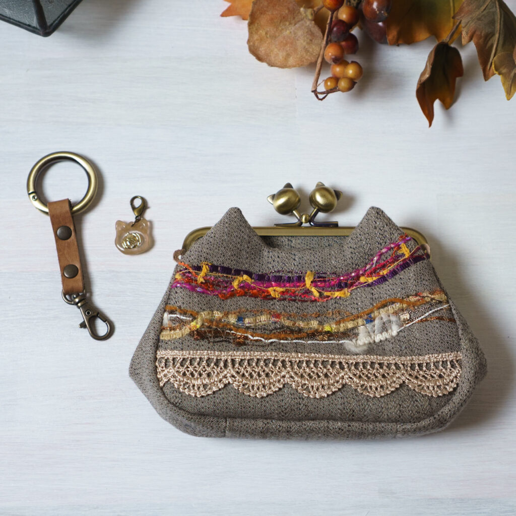 秋の雰囲気たっぷりなアズネコポーチの薄型を2種作りました。