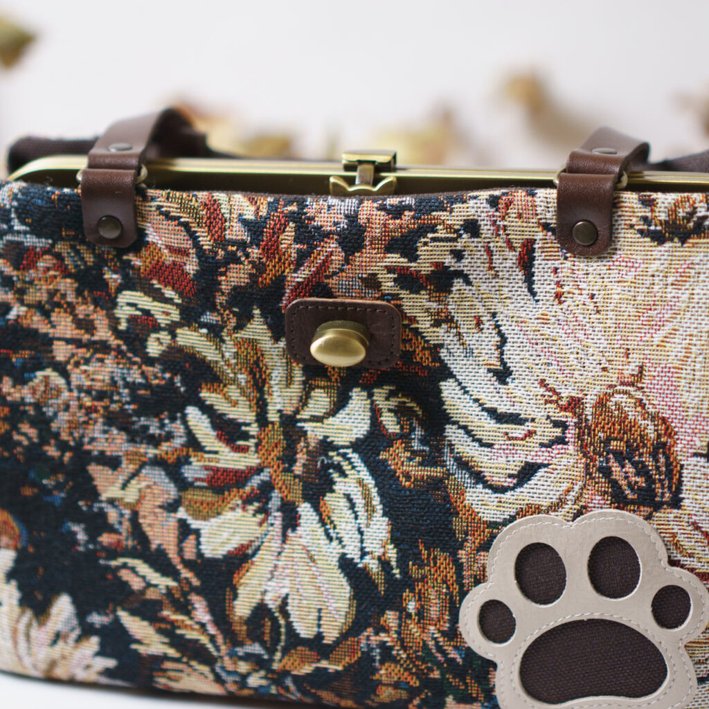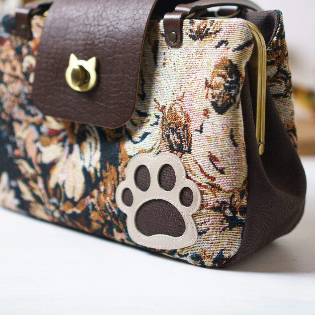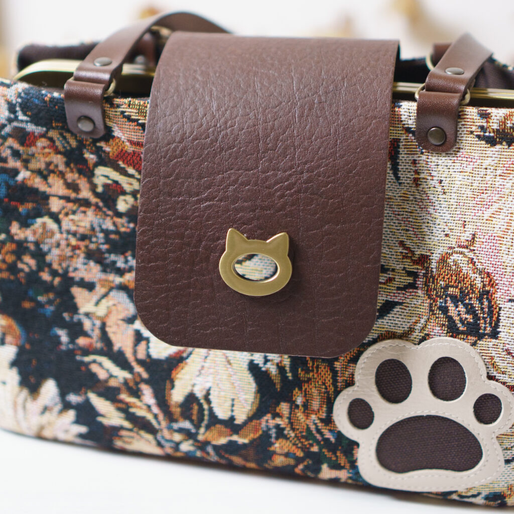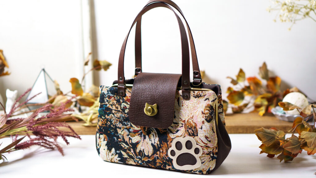 ブラウンフラワー・猫がま口ボストンバッグ
