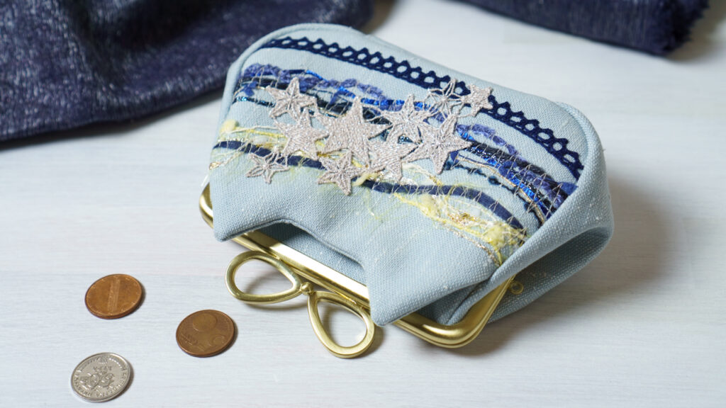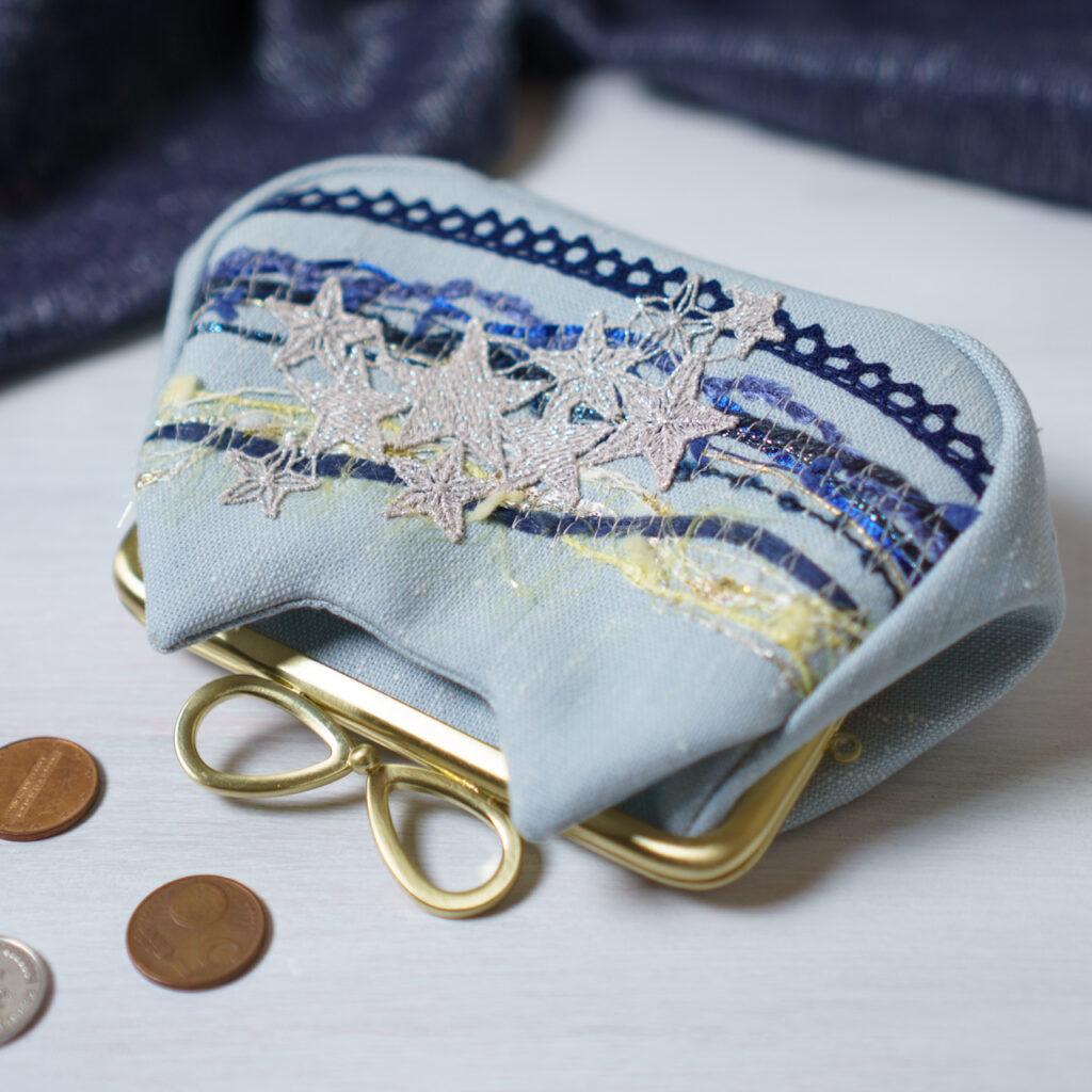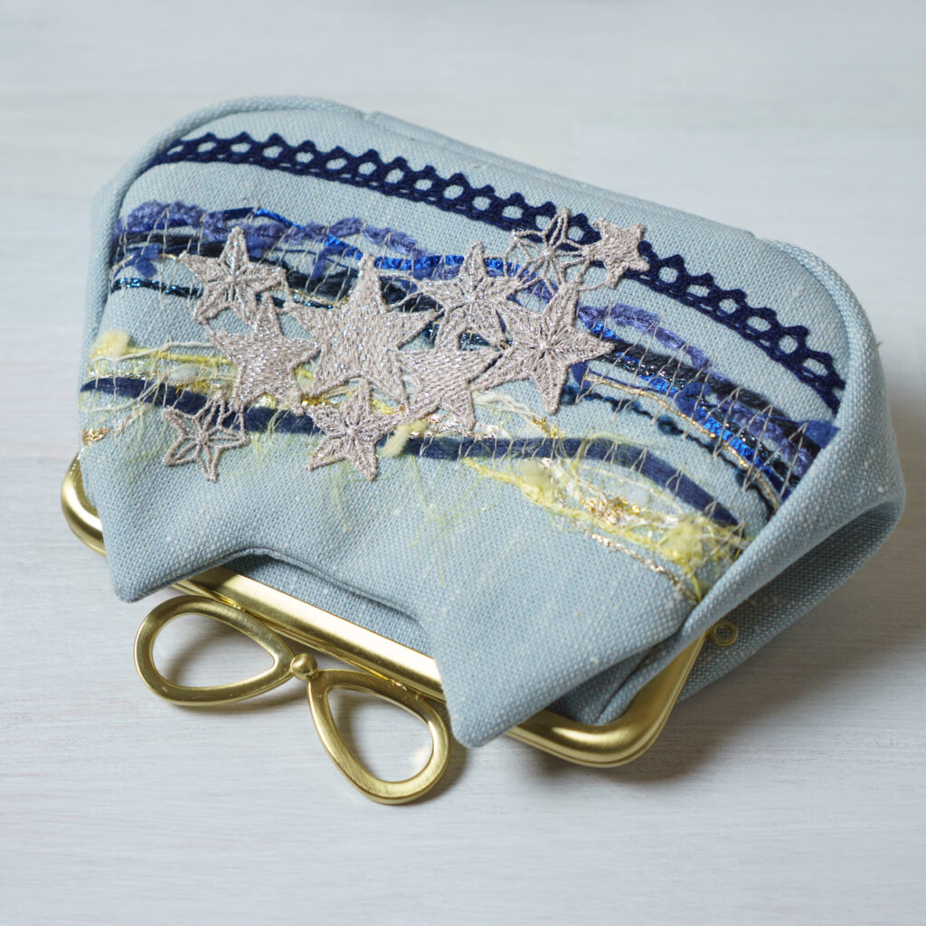 星とランダムに引き揃え糸を縫い付けています。