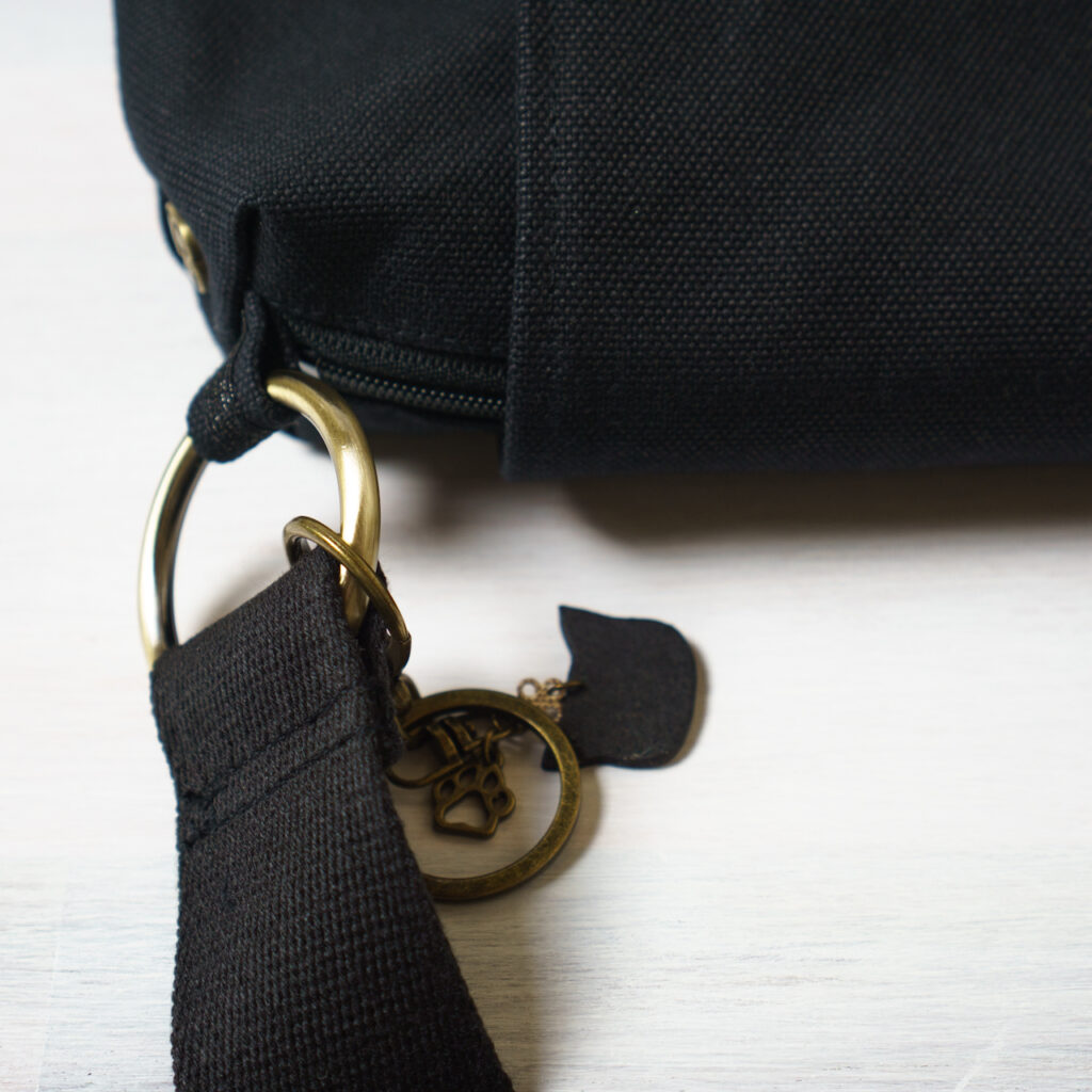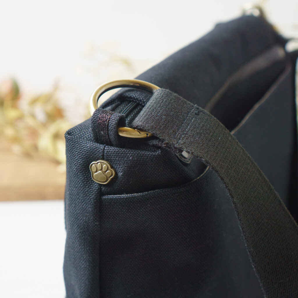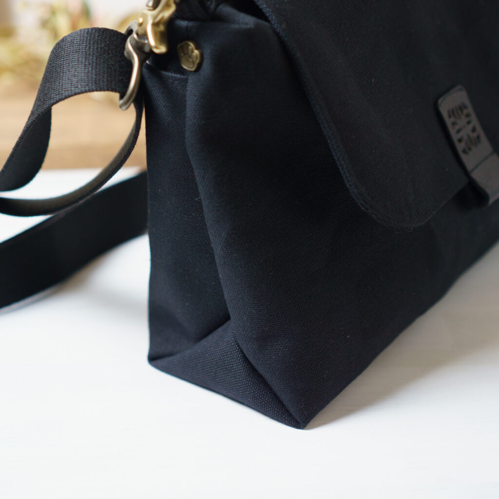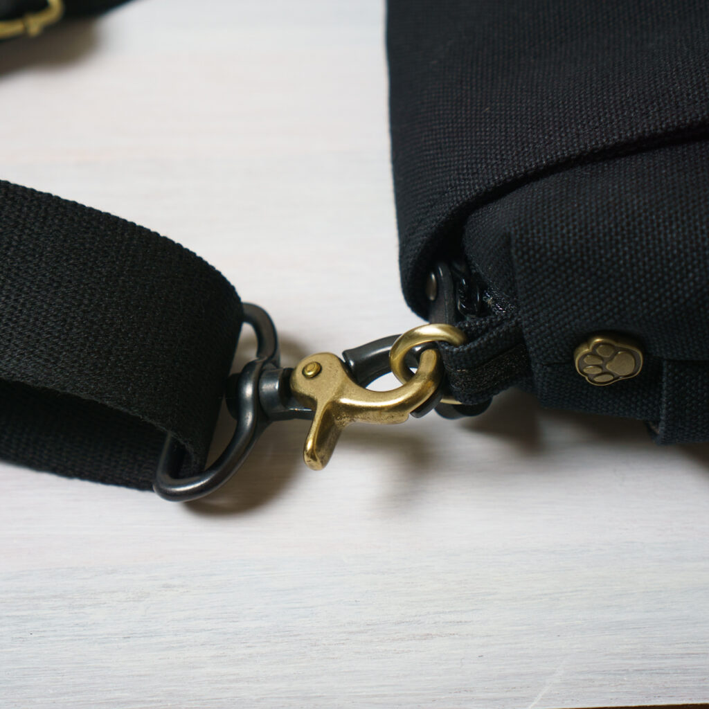 帆布、革、ショルダー紐を黒で統一しつつ