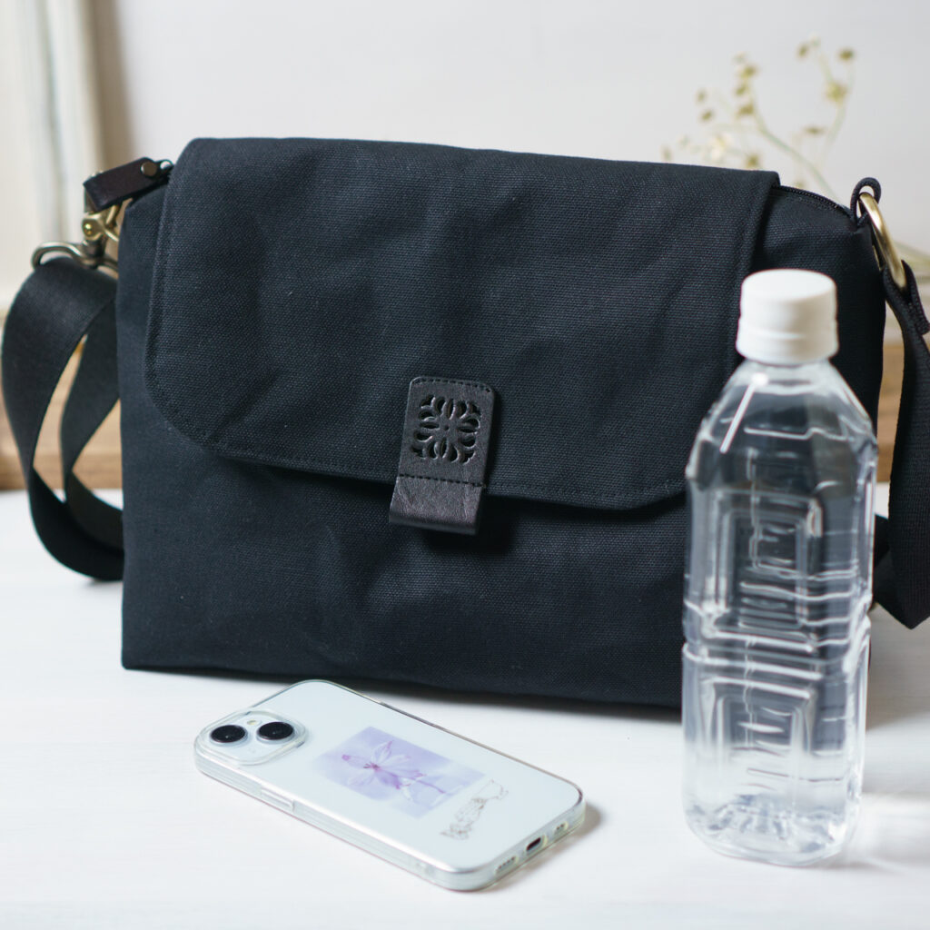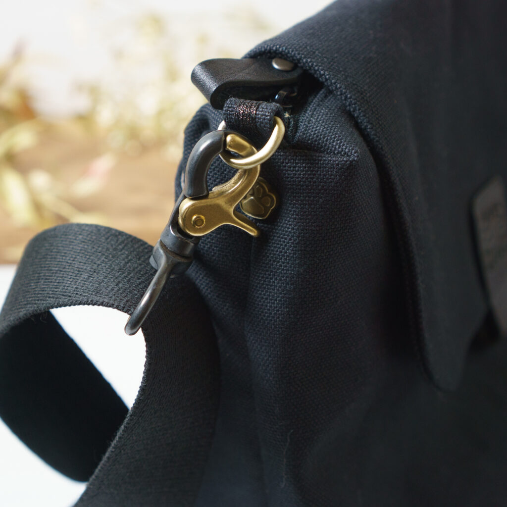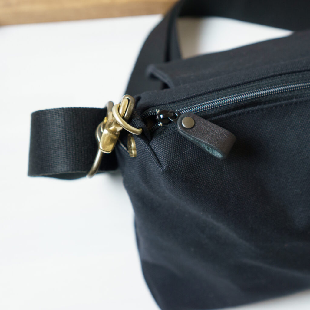 形はシンプル、パーツにこだわった、軽い帆布ショルダーバッグ