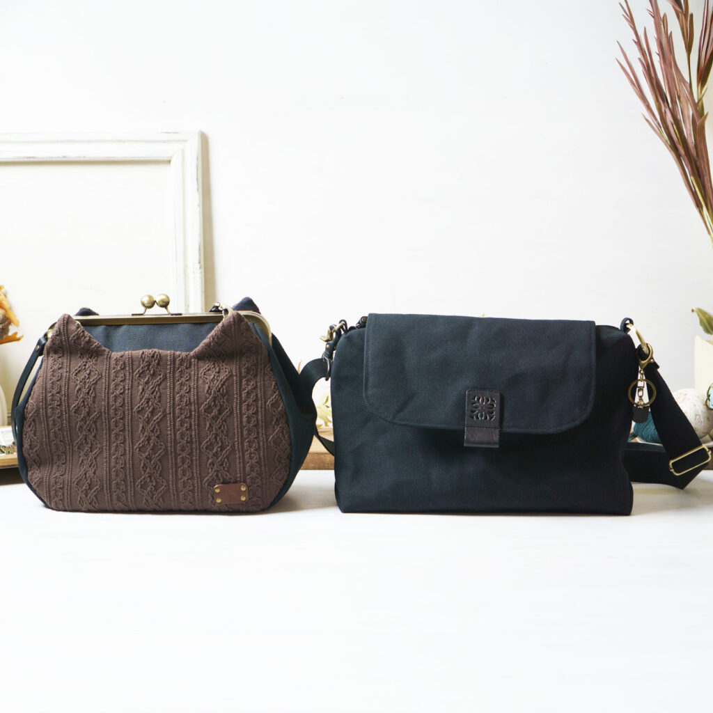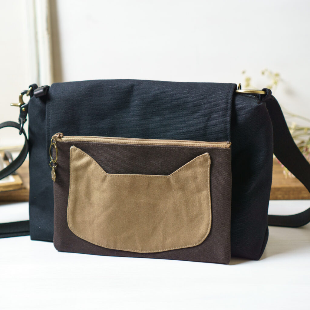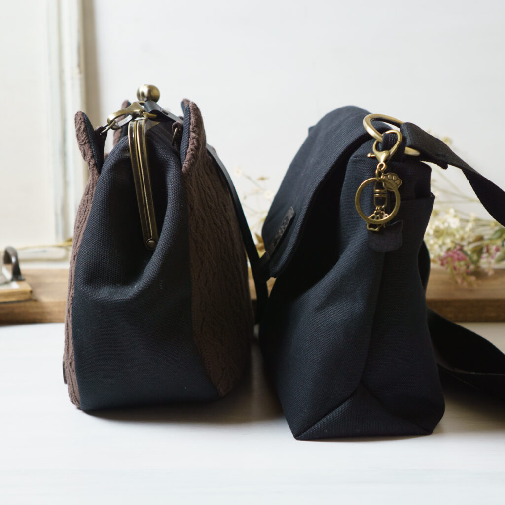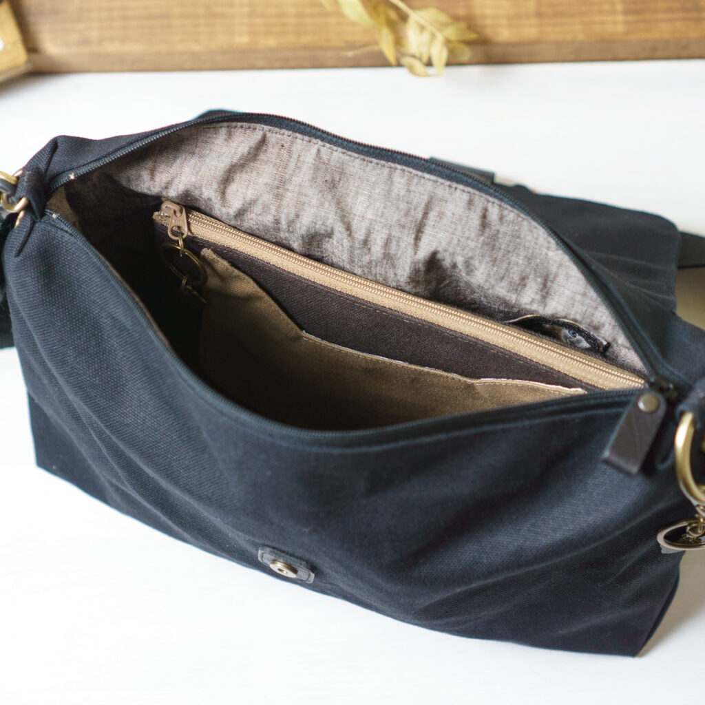 形はシンプル、パーツにこだわった、軽い帆布ショルダーバッグ