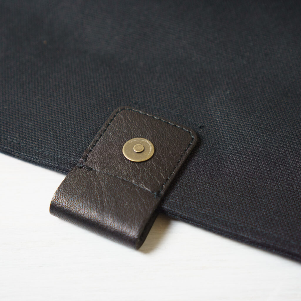 フタ部分は型抜きした革にマグネットホックを付けて