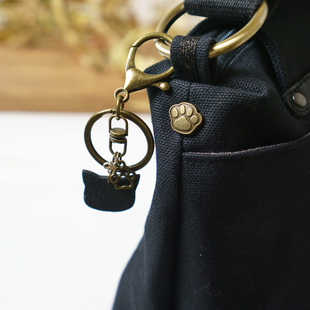 キーホルダー金具と二重リングのどちらで付けても