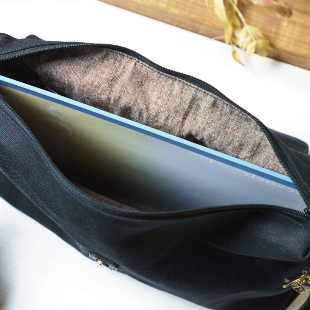 バッグ本体は軽くなるようファスナー仕様にしました。